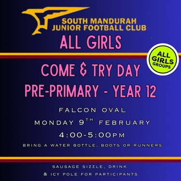 9th Feb 2026 - Female Footy Come & Try Day (Pre Primary - Year 12)