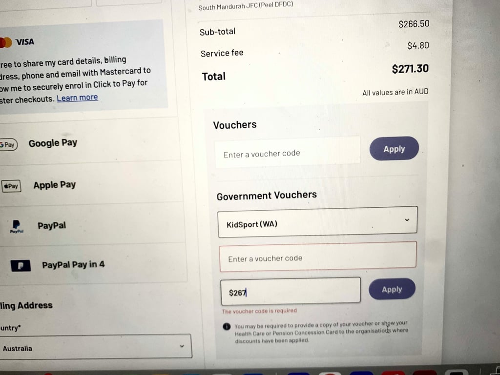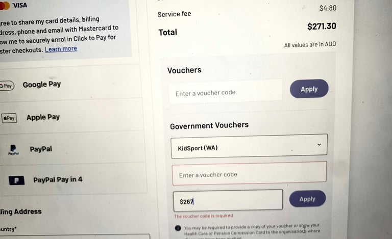 Make sure you have your voucher code from Kidsport before continuing